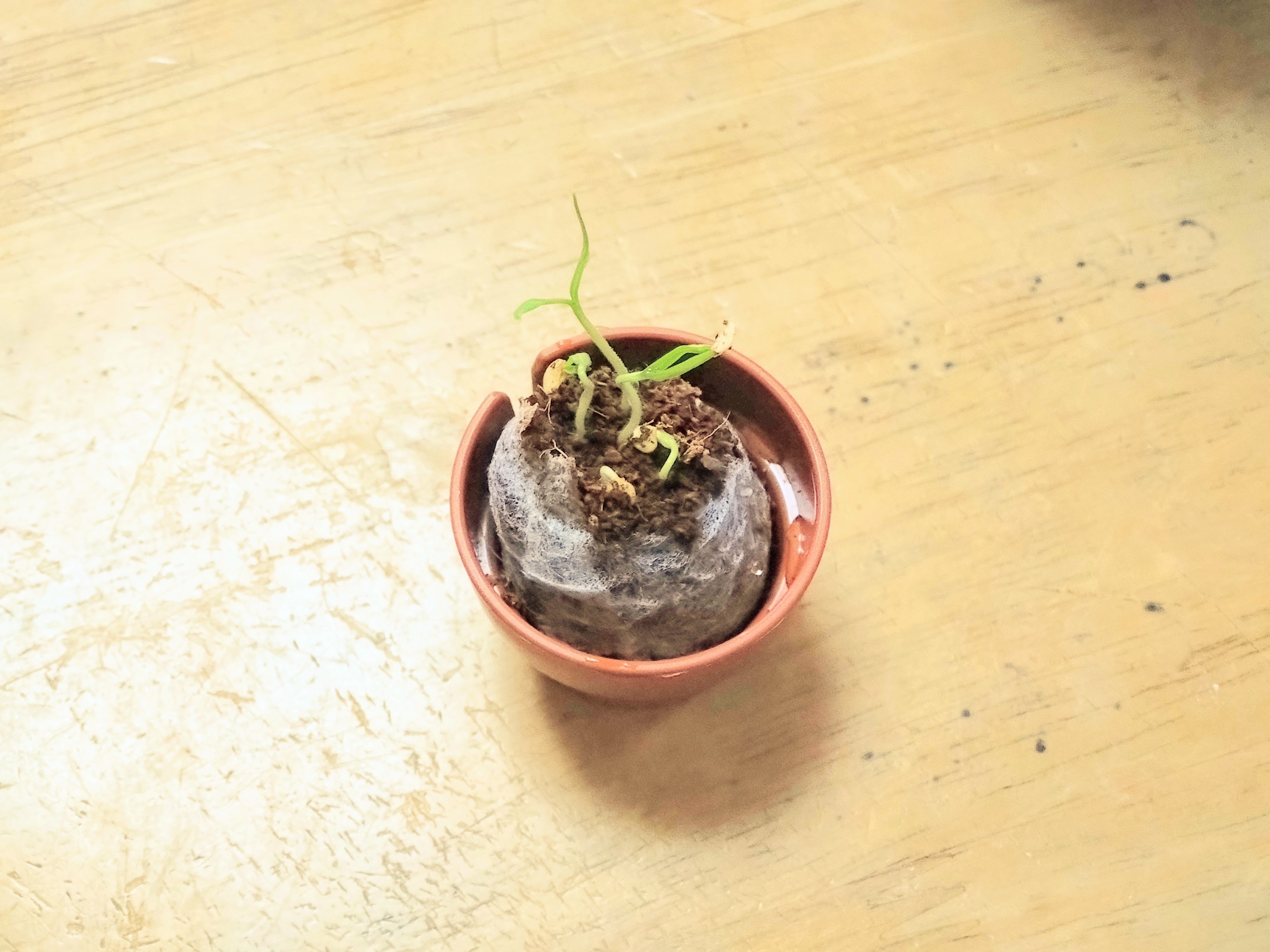 芽がのびてきた様子自分はまともに植物を育てられたことがないのでちゃんと実ができるように頑張りたい!