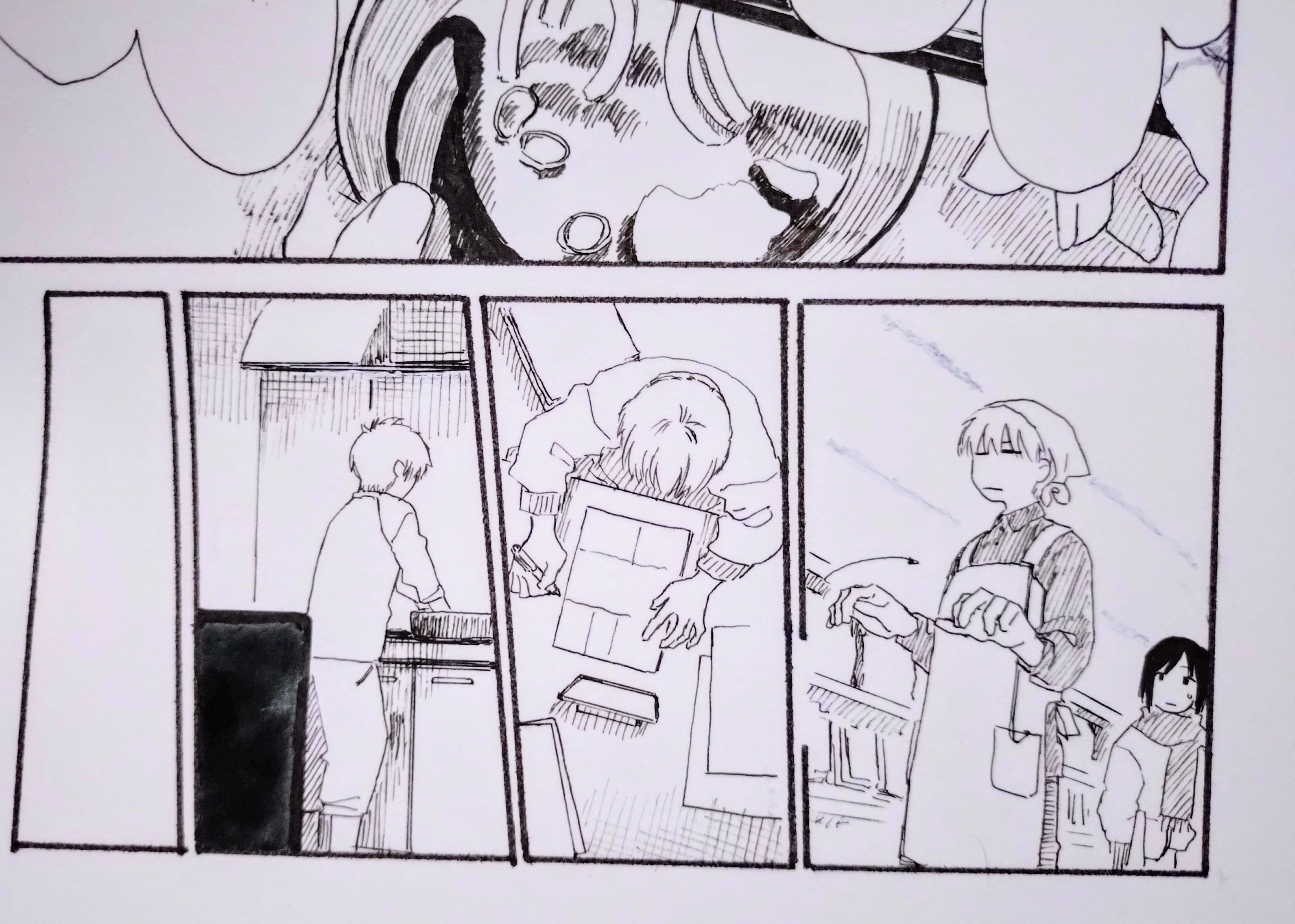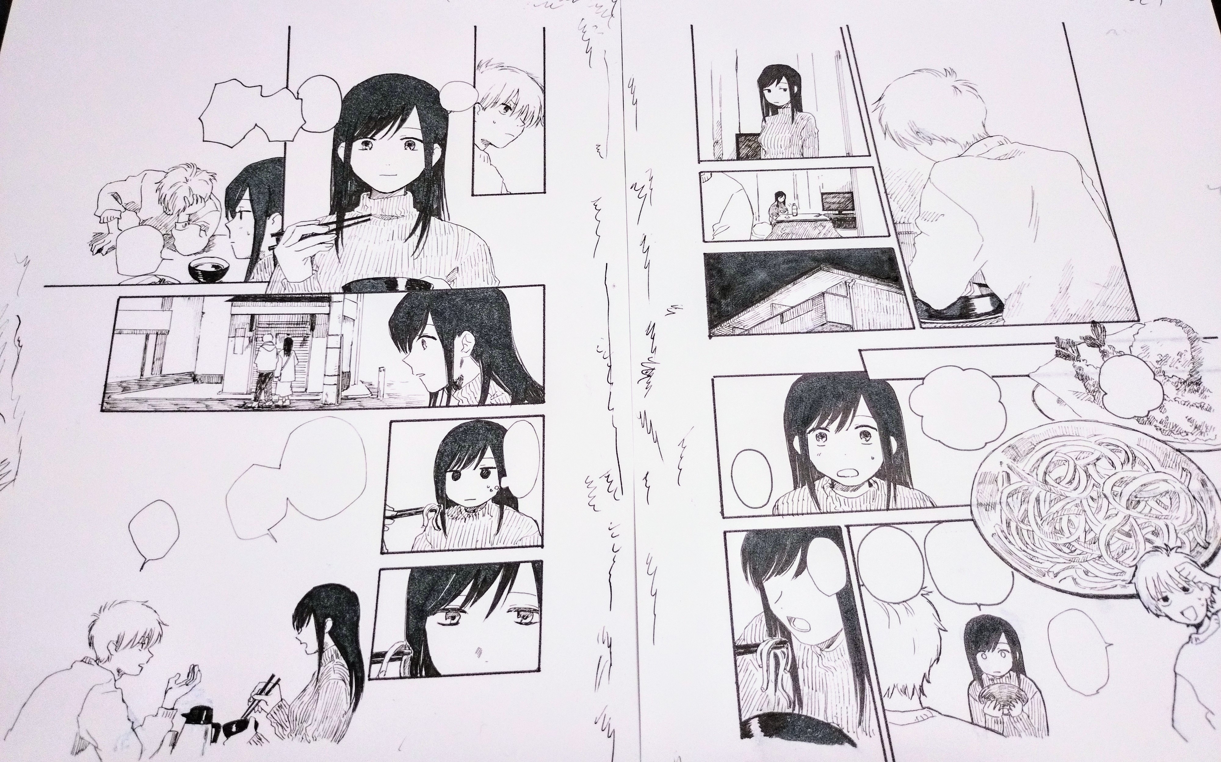 4ページ分のアナログ仕上げのあと埋めてなかったコマを埋めたり、デジタルで描くページを終わらせました。