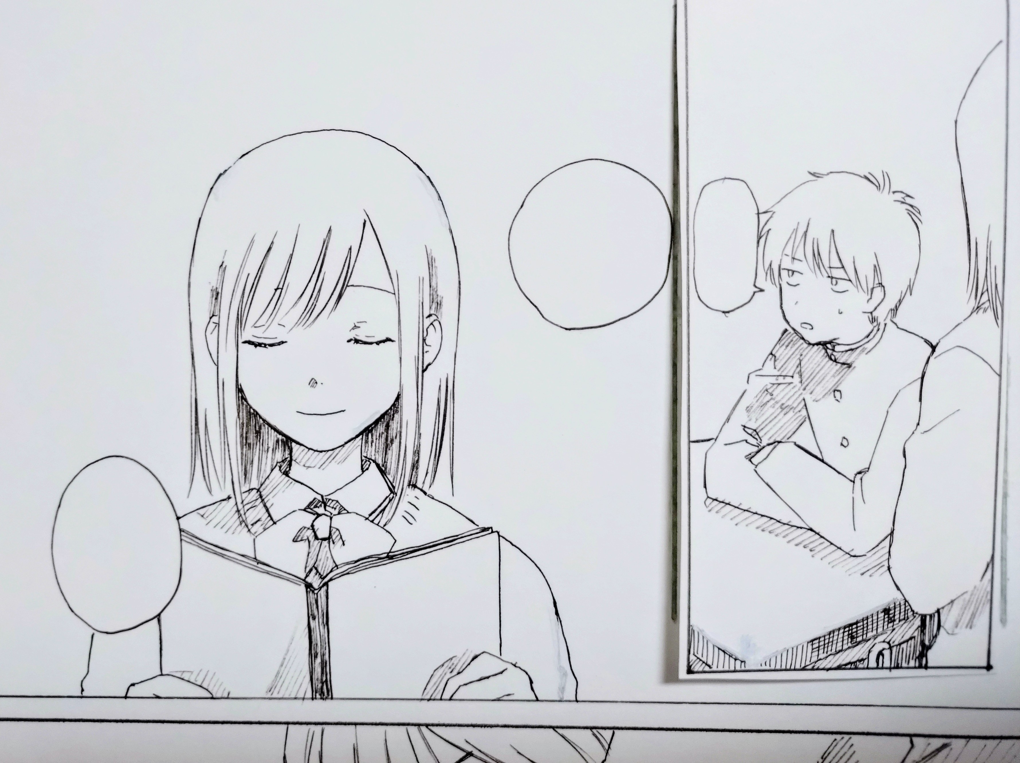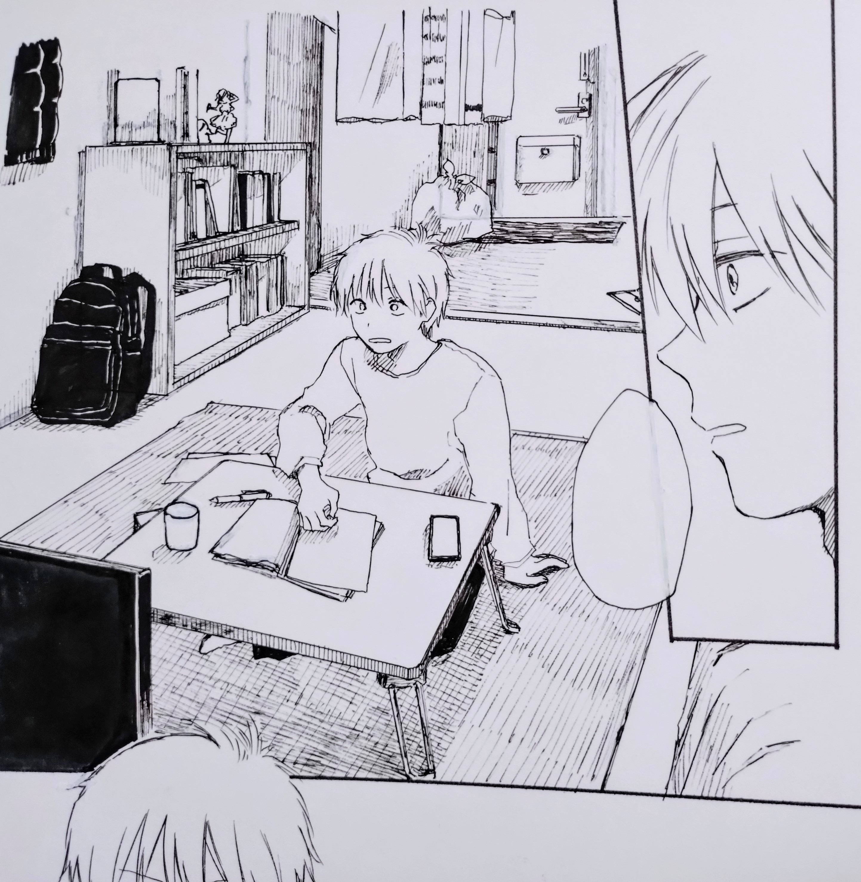 今日は朝少しと出勤前に下描き、夜ペンの仕上げを5ページ終わらせました。