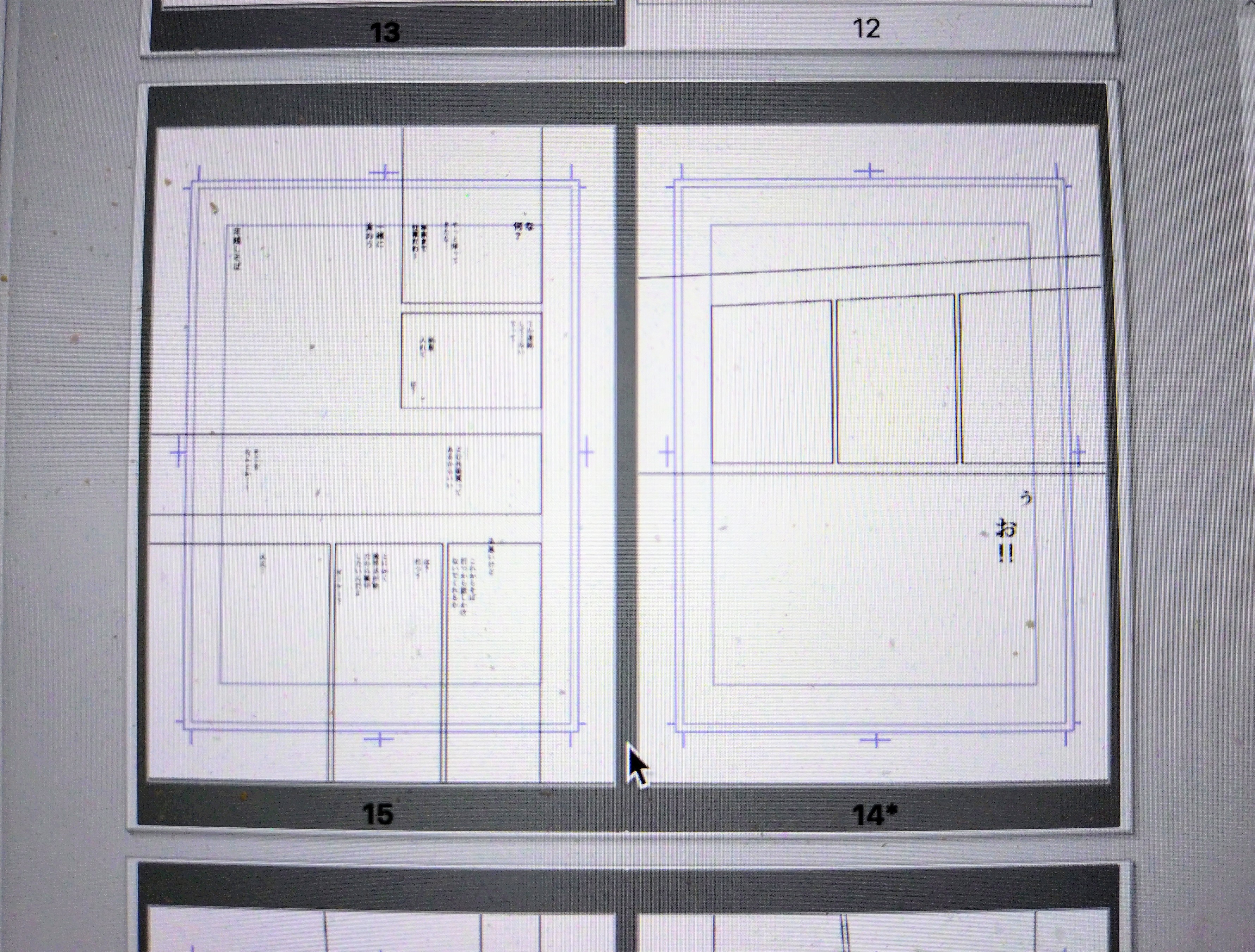 今日は朝作業、最寄り駅着いてから出社までの時間で表紙の案出し、帰って1p下描き、残り3pの台詞入れ…という感じで、今日下描きを終わらせる予定でしたが明日に持ち越しになりました。